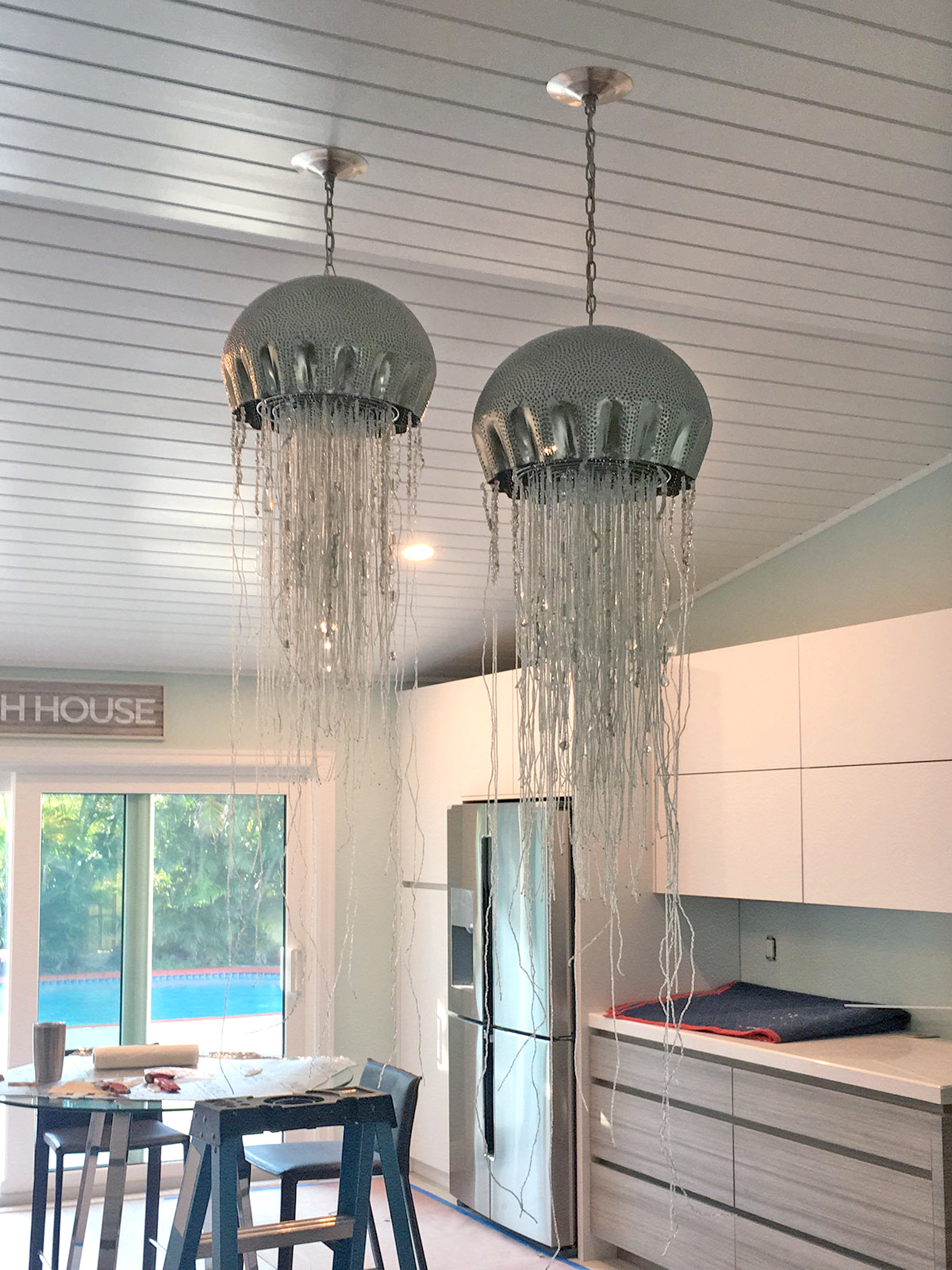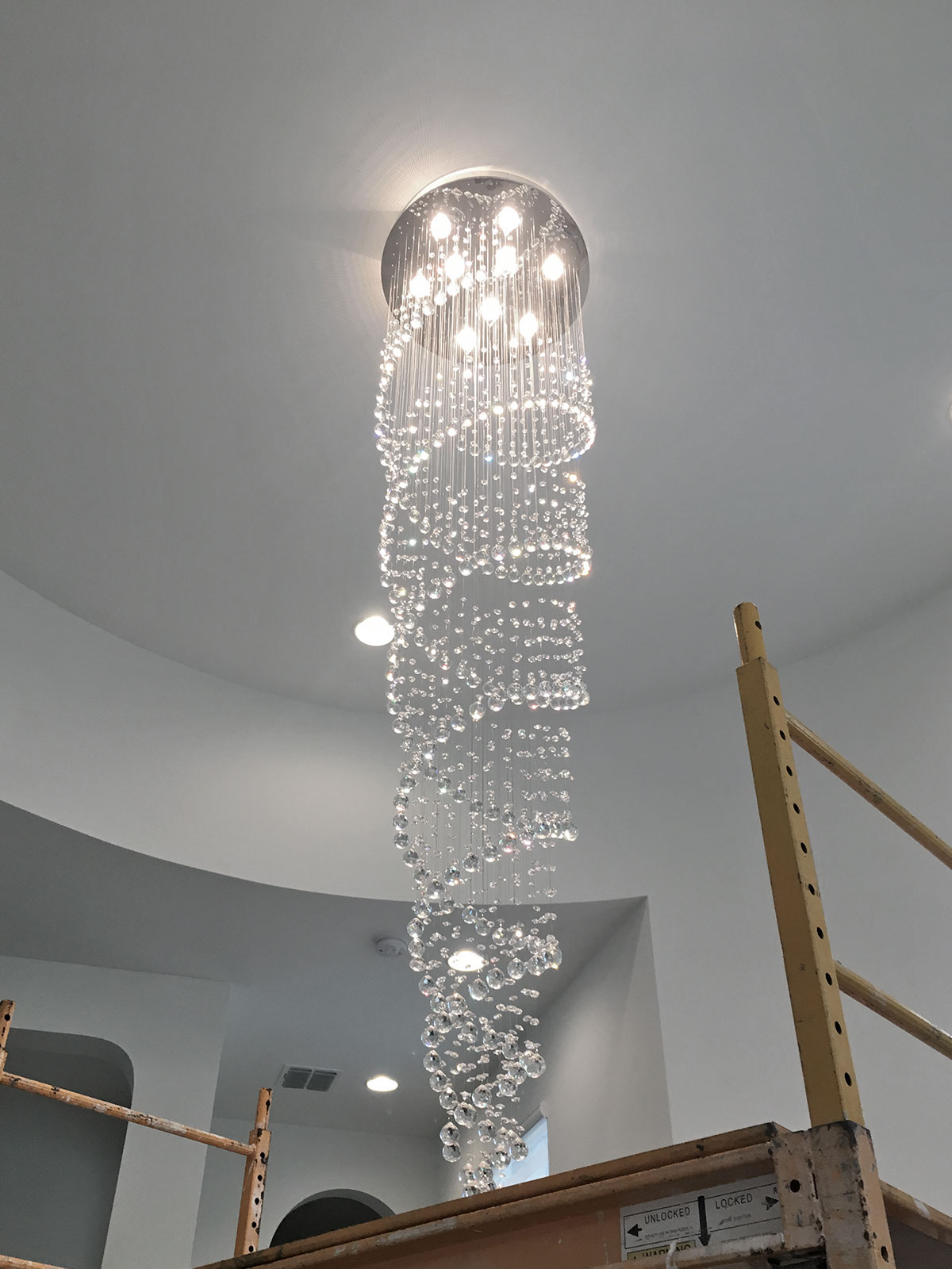 We work with certified electricians to install all your lights, be it a big chandelier in the hallway or living room, regular lights anywhere in the house or installation of lights to create a special atmosphere or even a piece of light art!